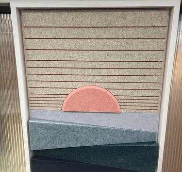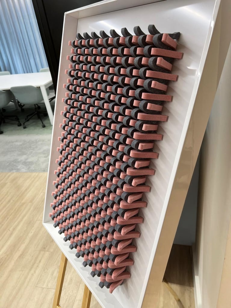 Tai modernus būdas suderinti akustiką su interjero estetika. Iš specialios akustinės medžiagos išpjaustomi įvairūs raštai ar formos, kurie vėliau įrėminti tampa stilingu akcentu kambaryje.